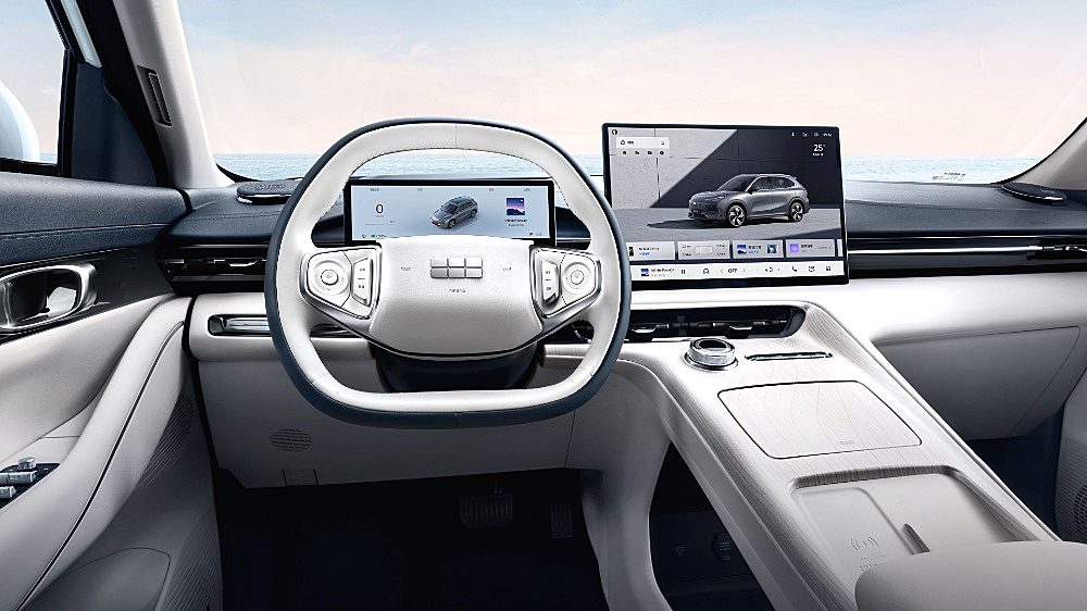 这款车配备了9.2英寸内嵌式全液晶仪表与一块15.6英寸的2.5K悬浮式中控大屏,构成了信息显示与交互的核心。