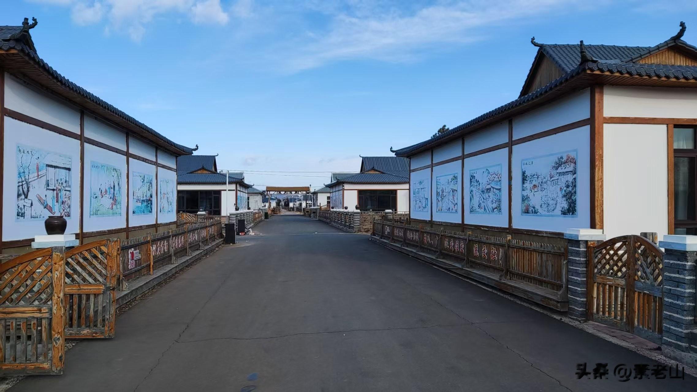 村中有一条笔直的中央大街,长度约一千五百米左右,宽约六米左右。道路两侧布满了青松翠柏。风光旖旎,宛如画卷。