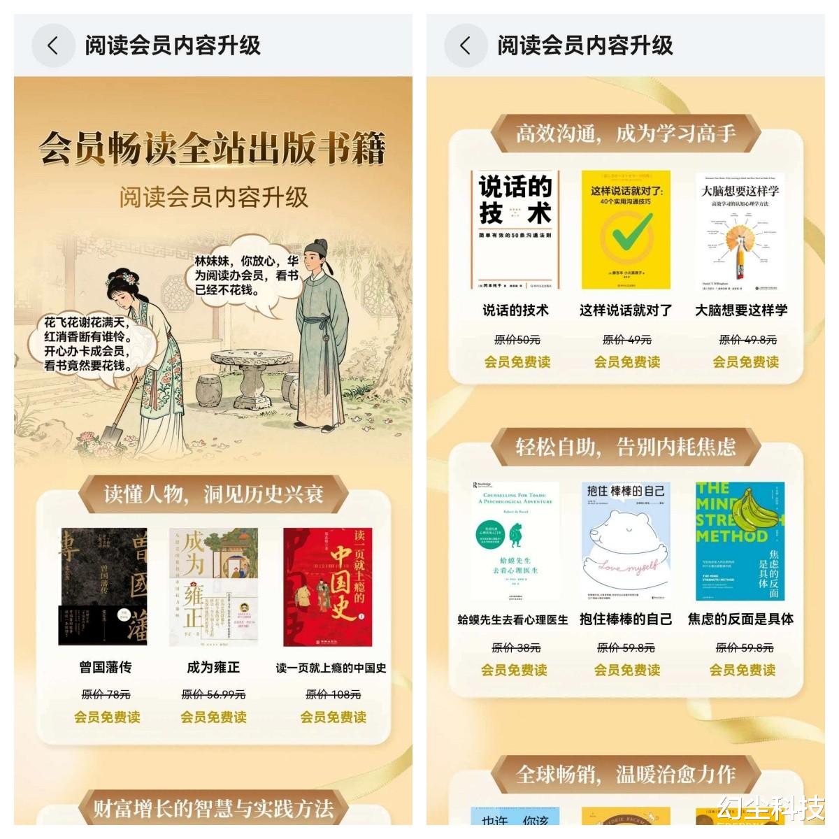 而且如果是华为手机用户,并且开通了华为阅读的会员的话,那么这本书就可以直接免费阅读,而这也要感谢近期华为阅读的一个大动作——会员权益升级。