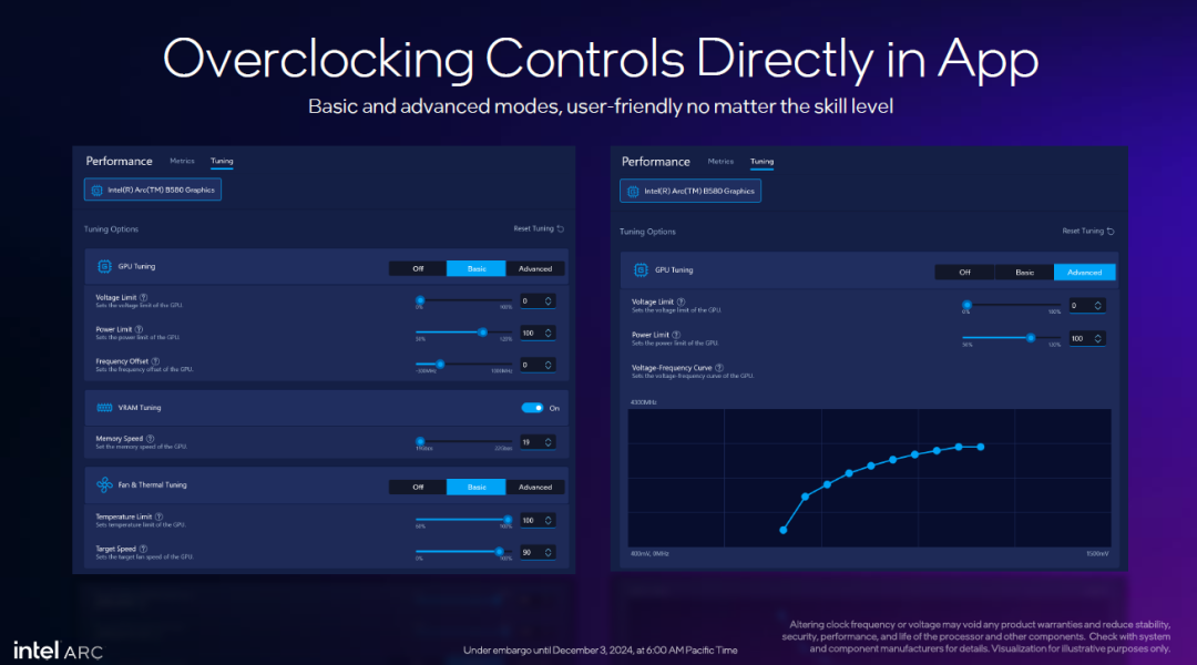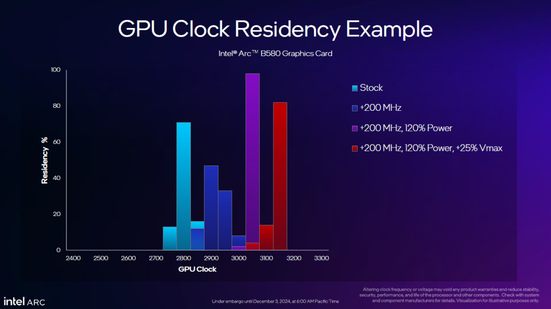 英特尔给出的案例显示,用户可以很轻松地通过增加频率、增加功耗限额等,使得GPU的整体频率从之前的大约2700MHz提升到接近3200MHz,幅度相当惊人了。