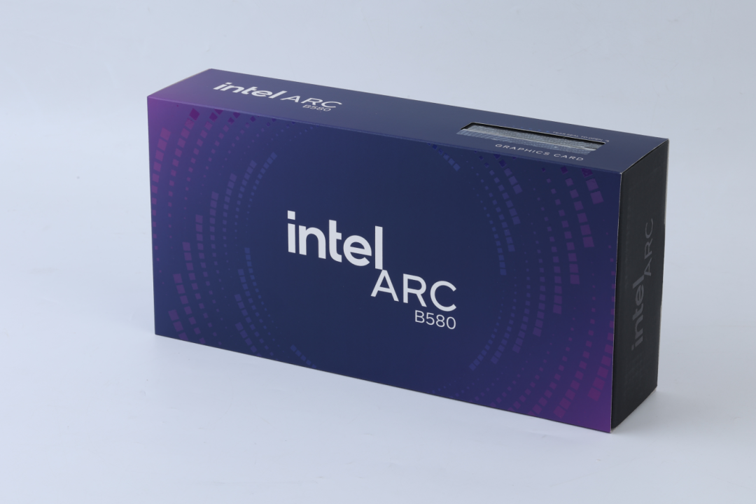 从包装外观上来看,英特尔锐炫B580的整体风格跟此前的A770、A750还算一脉相承,经典的“英特尔蓝”外盒搭配深黑幽邃的显卡配色具有极高的产品辨识度。