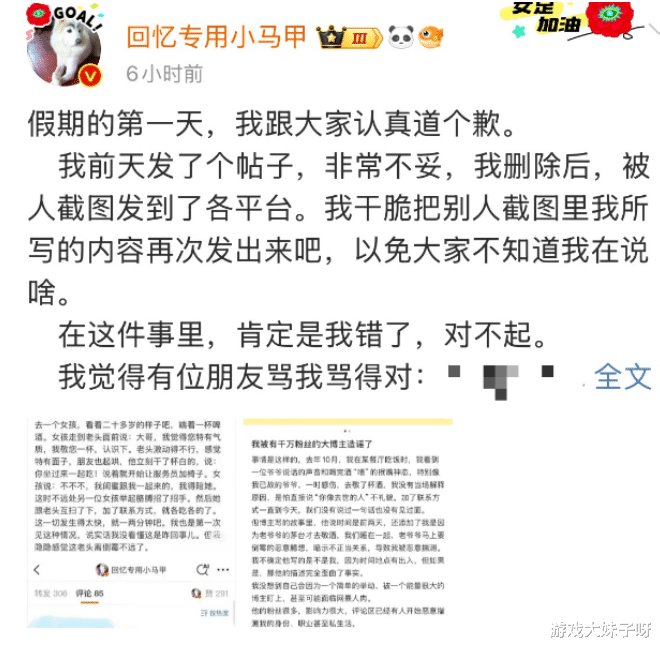 千万网红塌房,恶意造黄谣,被当事人澄清后紧急发布道歉声明,4月29日,一条来自千万粉丝博主“回忆专用小马甲”的微博引发了轩然大波,他在文中描述自己在餐厅目睹一名年轻女孩向一位花甲老人敬酒,并互加联系方式。