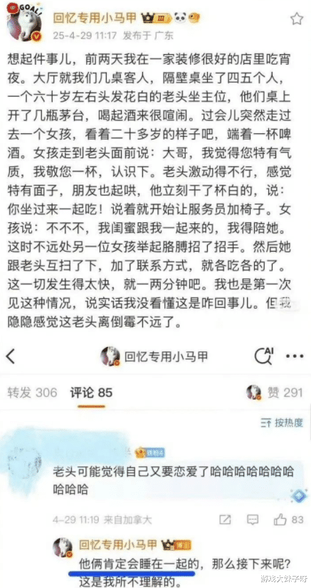 随即暗示两人存在不正当关系,甚至用极具攻击性的语言妄加揣测:“他俩肯定会睡在一起”“老头离倒霉不远了”。这条帖子虽被迅速删除,但截图早已在多个平台广泛传播,引发网友热议与谴责。