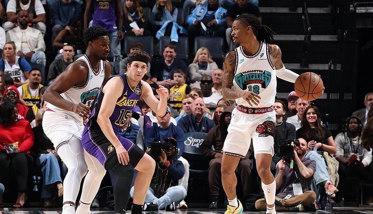就当所有人以为湖人要轻松收工时,替补席杀出个程咬金。 文森特这个赛季场均只有5.3分的边缘人,第二节突然连中4记三分,其中一球还是踩着中场logo的超远距离出手。 他单节15分的表现直接打懵灰熊,分差最大来到20分。 灰熊球迷开始提前退场,现场镜头捕捉到莫兰特低头撕扯护腕的焦躁画面。灰熊绝地反击:更衣室矛盾成转折点下半场风云突变。 灰熊第三节突然祭出「自杀式快攻」,贝恩和小贾伦·杰克逊连续冲击内线,单节轰下38分。最离谱的是第三节还剩3分钟时,灰熊替补席被拍到惊人一幕——阿尔达马和贝恩因为防守站位问题发生激烈争吵,助教拉都拉不住。 这种「内讧式爆发」反而激发出灰熊的血性,三节结束分差只剩3分,湖人球员走回替补席时脸色铁青。