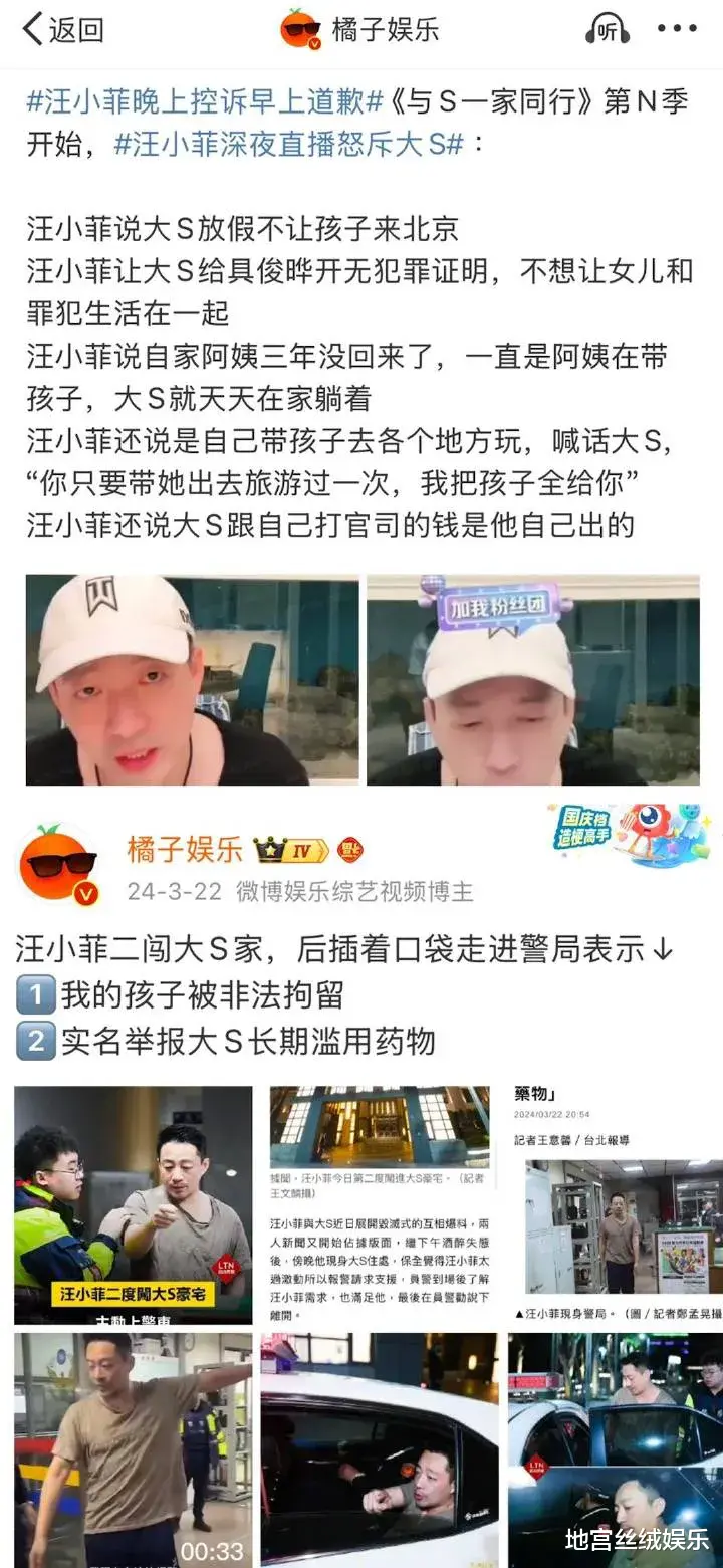 还在去年3月闯进大S家中,称自己孩子被非法拘留,甚至实名举报大S长期滥用药物,指控大S吸食毒品。