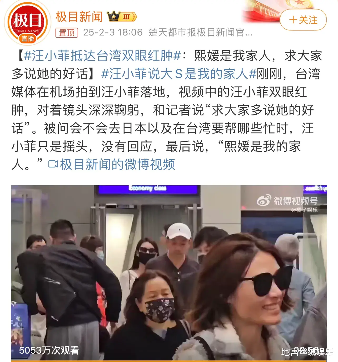 昨日到达湾湾时,他双眼通红,一看就是哭过。面对媒体的采访,他对着镜头深深鞠躬,和记者说“求大家多说她的好话”,还表示“大S是我的家人”。