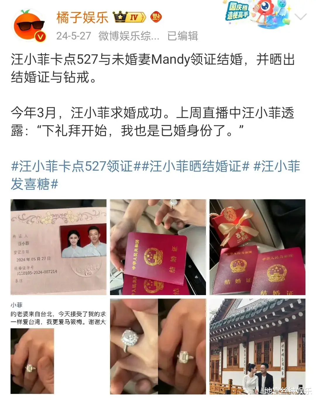 评论之后,汪小菲又发现没对,删除了“老婆我好想你”,重新评论“我好想你”。毕竟,他在去年的5月27日,才官宣了和现任妻子Mandy领证结婚的好消息,要说“老婆”的这个称呼,要用在Mandy身上才对啊。