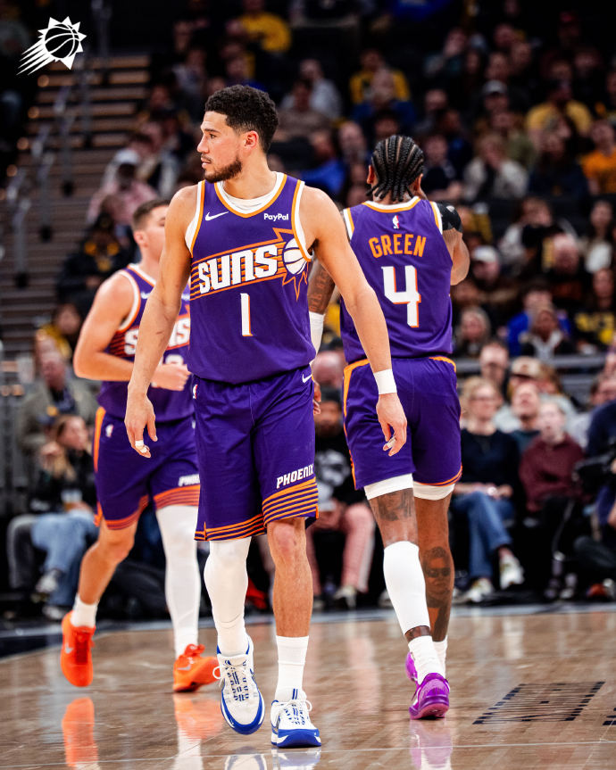 布克和格林今天表现都非常出色,双双迎来大爆发,得分均创个人赛季新高,合砍79分。布克状态火热,出场34分钟,31投14中,三分7中4,罚球11中11,砍下赛季新高的43分外加7篮板5助攻1抢断1盖帽。布克的个人生涯总得分来到17716分,成功超越了魔术师,也继续刷新太阳队史纪录。