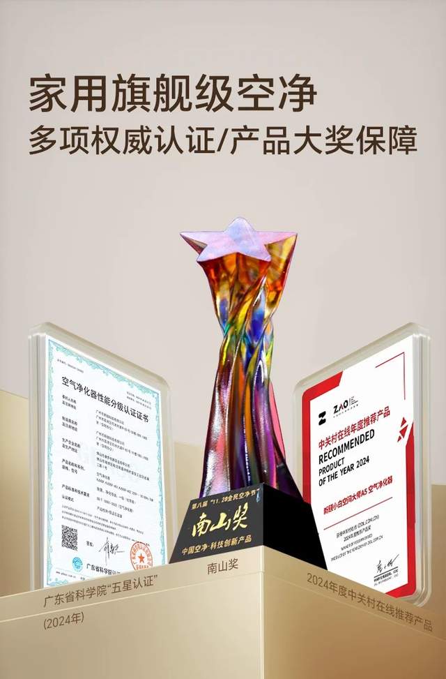 权威认证:通过中科检测CMA认证,净化1500mg甲醛后滤网损耗仅4.3%,甲醛CCM达F4级(最高级)。