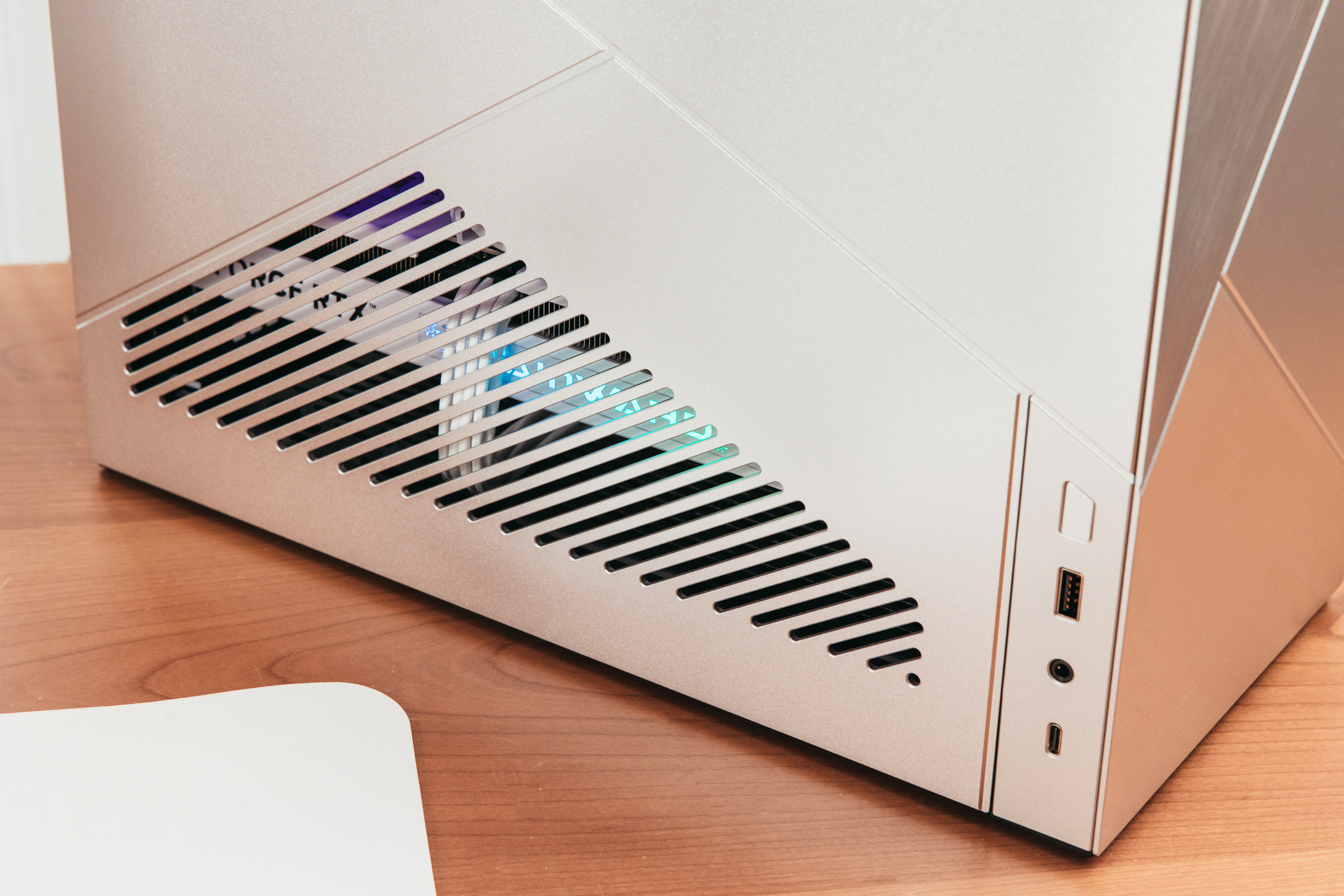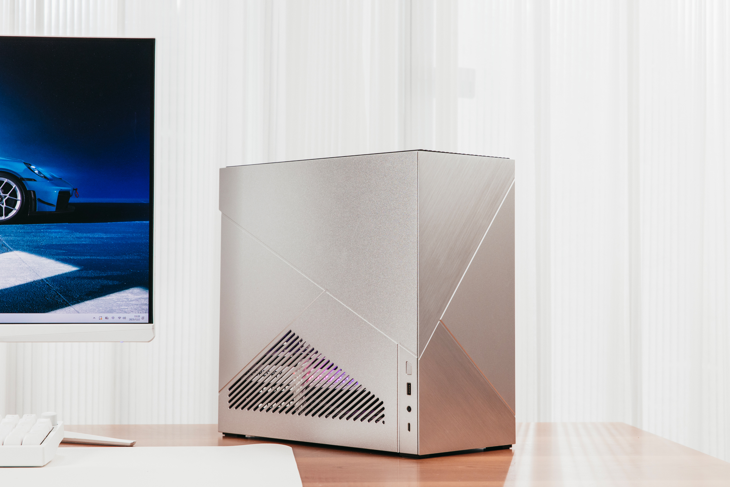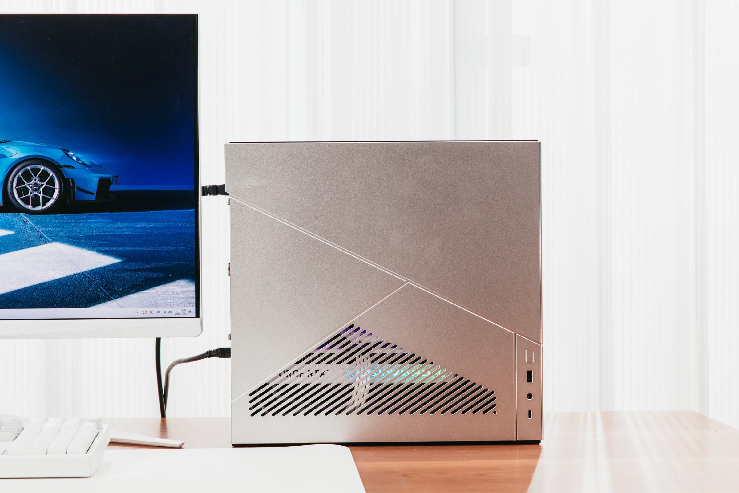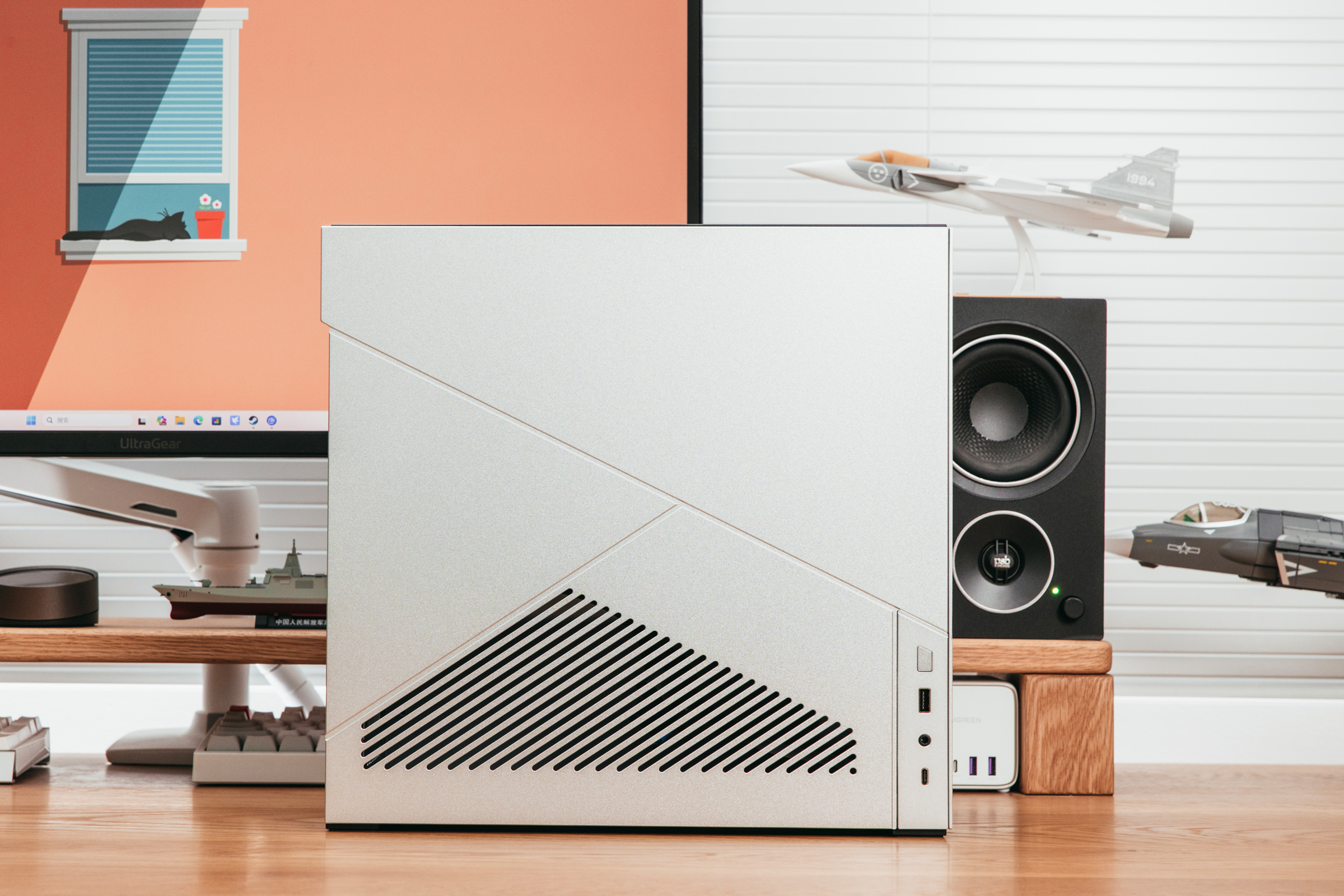 整机以CNC全铝为亮点,不过顶部和背部则为黑色,接口位于机箱左侧位置。