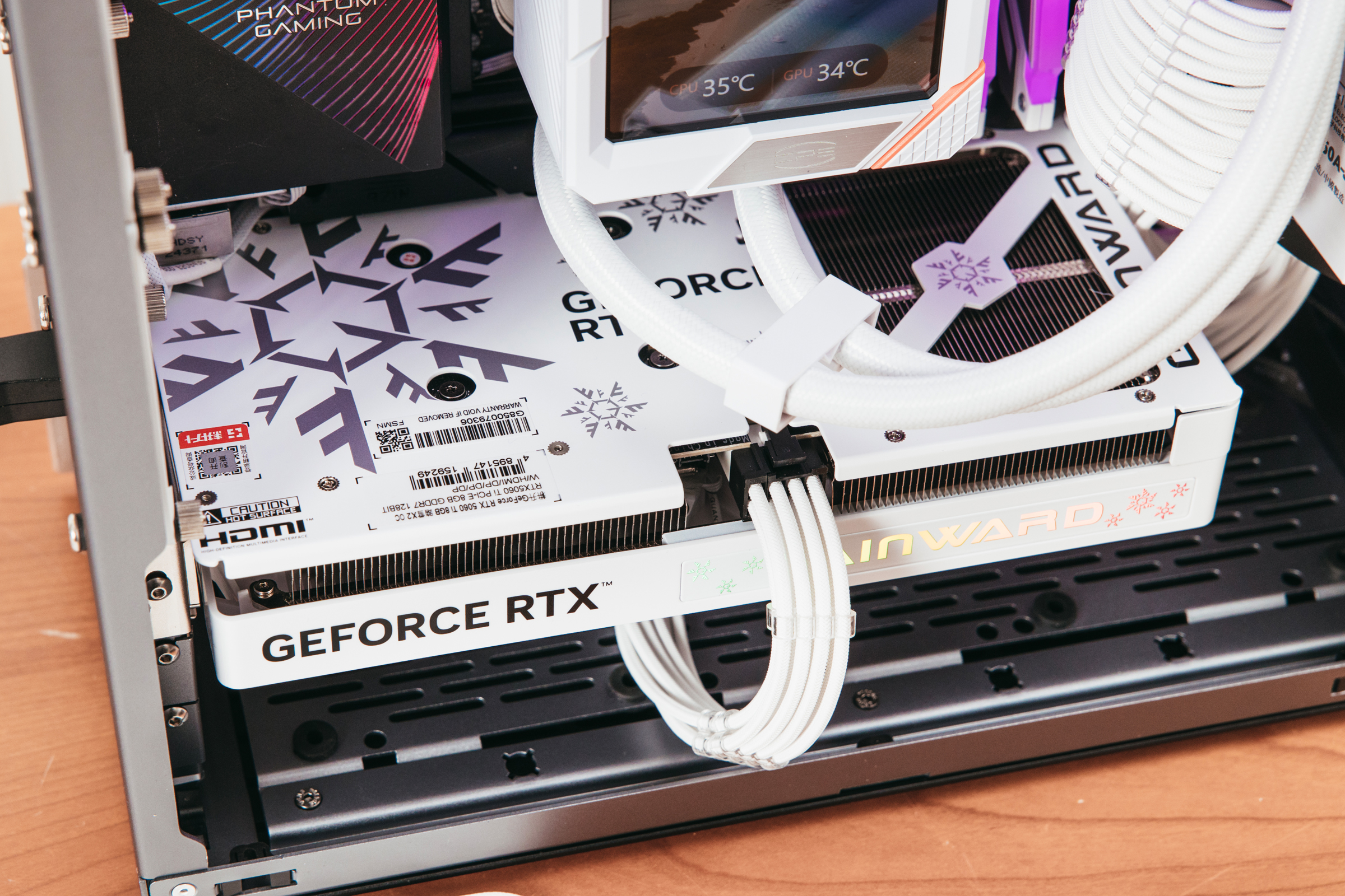 这张双风扇双卡槽显卡是耕升的5060Ti踏雪,放到机箱里体积恰到好处。