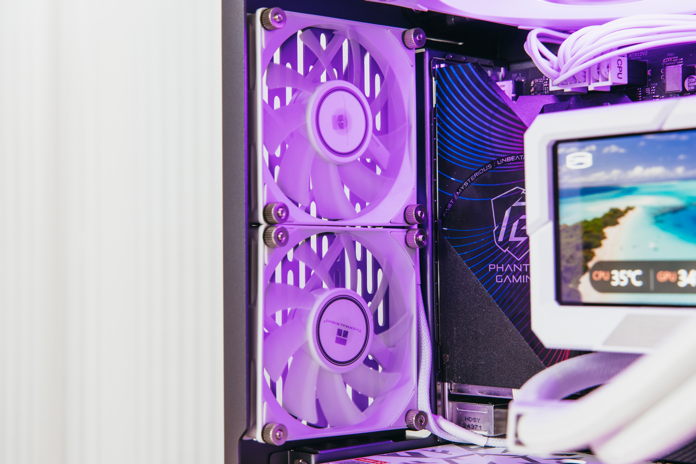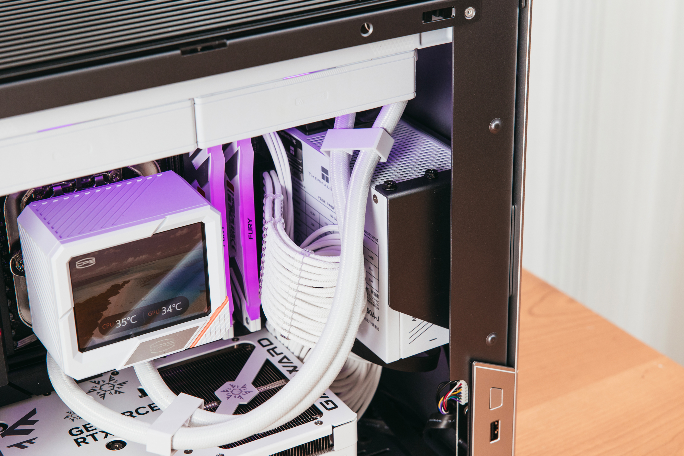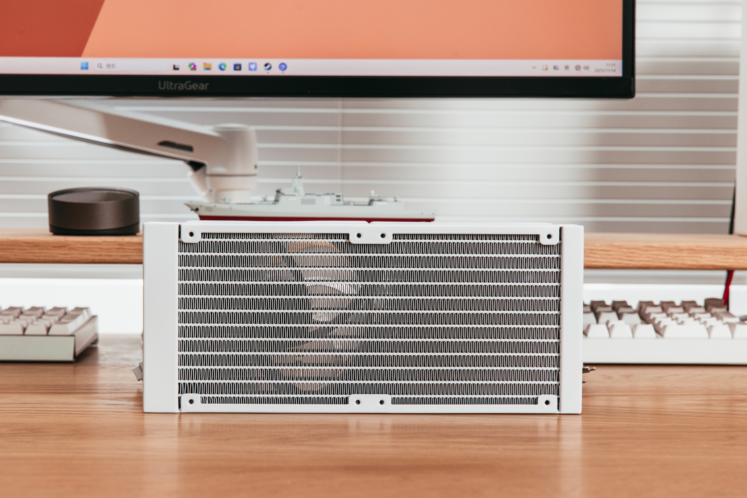 整体体积足够小巧紧凑,北境GT240还为水冷管提供了理线槽,风扇也是串联好的。