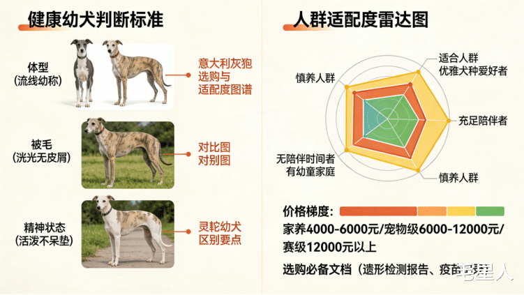 选购需避开两大陷阱:一是“杂交冒充”,部分商贩用灵缇幼犬(体型更大)或中国细犬杂交后代冒充,需认准核心特征(意大利灰狗肩高不超过38厘米,灵缇可达70厘米以上);二是“病弱幼犬”,低价幼犬可能存在先天骨骼缺陷或心脏问题,需选择出生满8周、体重超过1.5千克的健康个体。正规犬舍需提供《种犬遗传检测报告》与疫苗接种记录,售后保障不少于45天。