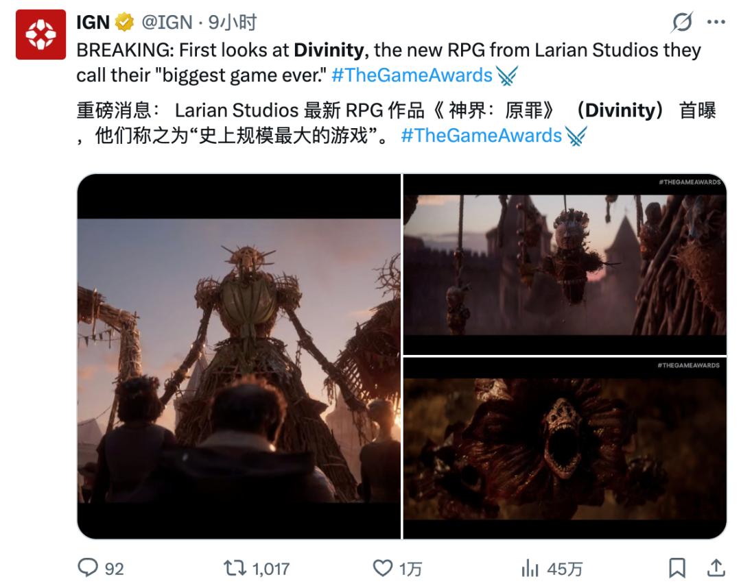 《博德之门 3》都做成年度游戏了,这个新游戏最后能成什么样,小发是真期待。