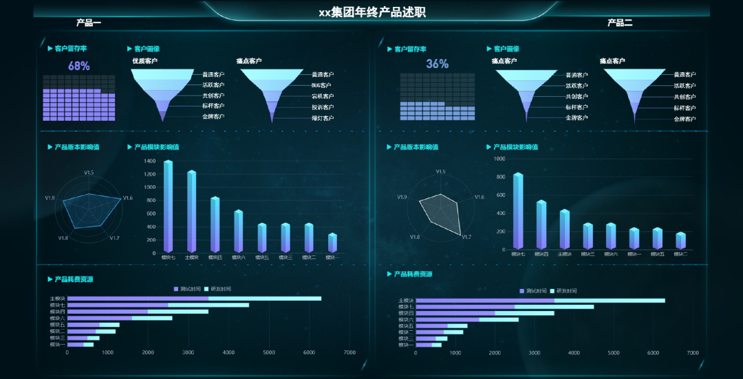 比如下面这几份数据看板,一眼望去,各种核心指标、趋势一目了然,就比几页的文字汇报和表格要清楚很多。