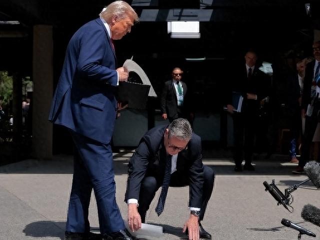 6月16日G7峰会现场,在与英国首相斯塔默的联合记者会上,特朗普不慎将文件散落一地,后者立马弯腰捡起这些文件。而这场会议刚进行一半,特朗普就以中东局势紧张为由匆匆离场,甚至没和东道主加拿大的总理告别。