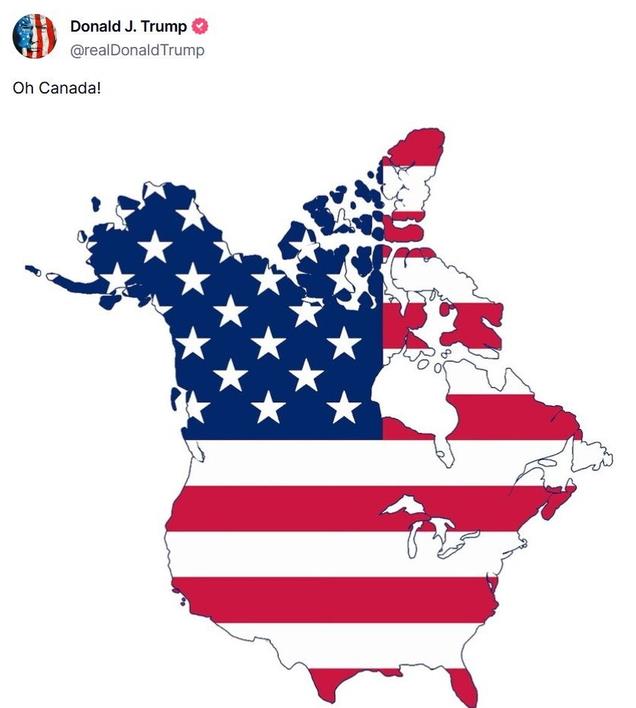 不过这对加拿大来说还是可以承受的,毕竟加拿大的老百姓都是非常好忽悠的。但是让加拿大万万没想到的是,现在给加拿大致命一击的并不是中国,反倒是美国这个亲爹,因为美国这个亲爹要把加拿大这个“好大儿”给当成灵丹妙药给吞了。比如特朗普已经多次公开表示,“加拿大就是美国的第51个州”,而且特朗普已经迫不及待的把美国和加拿大合并的新地图给发出来了。这对以加拿大来说可真的是灭顶之灾了。