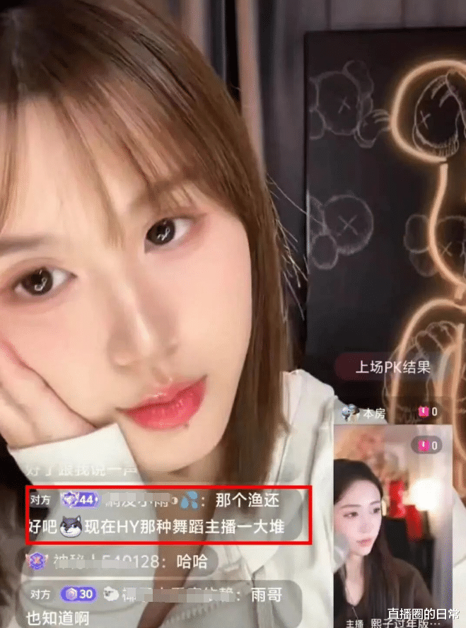 两位女主播见状,也继续追问,一心想知道到底是哪位女主播下海了。随着大家追问得越来越急切,刚才爆料的网友给出答案,说不是小袁,是小袁的一个 PK 朋友。熙子对这个答案不满意,毕竟还是不知道具体是谁。接着另一位大哥表示自己知道,因为他也见过,透露这位主播是名字里带 “渔” 的舞蹈主播,人很不错,只是可惜了。