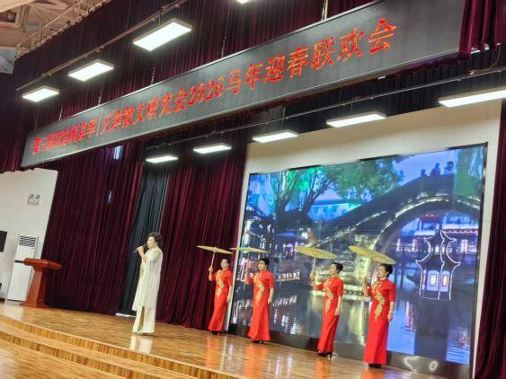曹淑莲自创合诵诗歌《新年,你好!》,黄静、李兰芳、曹淑莲、李其林、范庆玲、王平精神饱满地走上舞台,满怀深情地回望2025的收获,展望2026的新征程,歌颂祖国,面向未来,铿锵有力的朗诵声和音乐声汇成一股强大的凝聚力。