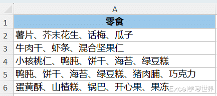 Text.Split([零食],"、"):将“零食”列以“、”作为分隔符拆分开来;效果如下: