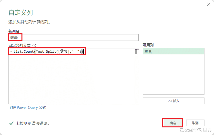 List.Count(...):List.Count 相当于 Excel 中的 count 函数,用于统计列表中的字符数。