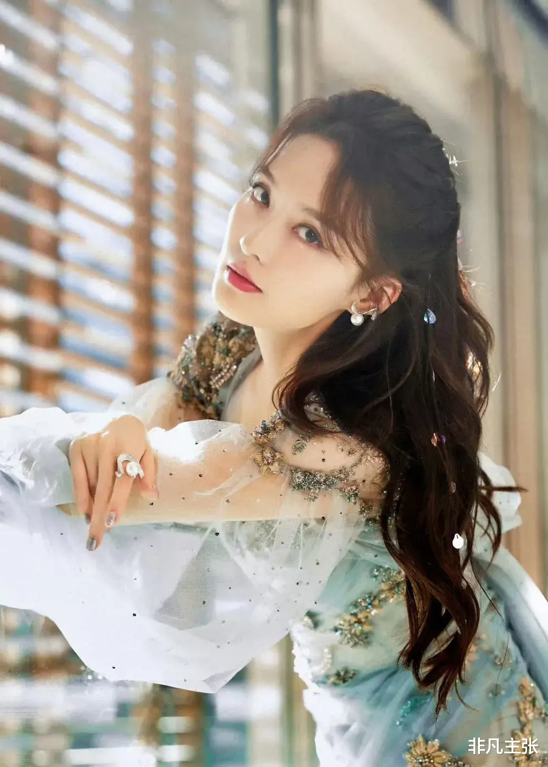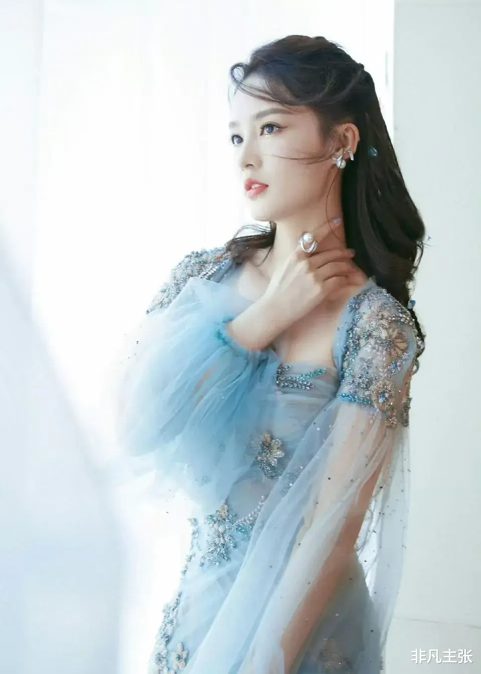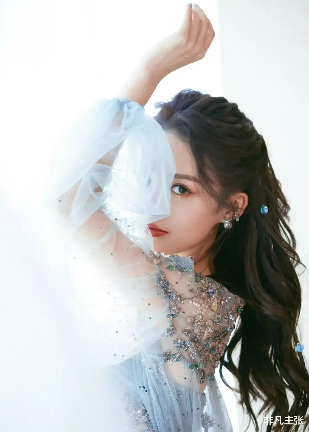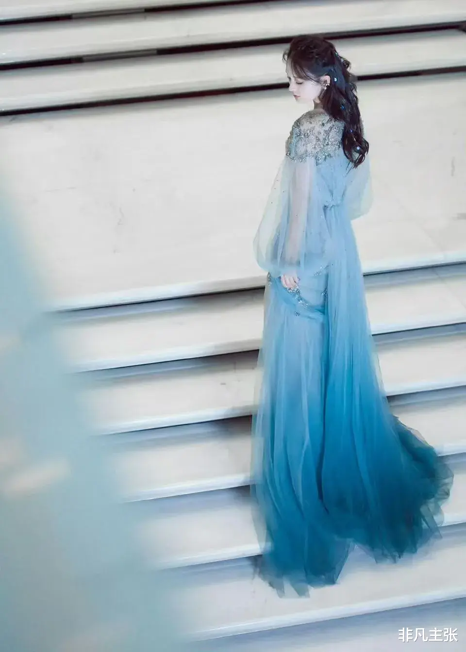 穿着一袭蓝色长裙的礼裙,清冷感满满,像极了美人鱼,美得毫不费力。柔和又独特的雾蓝色,与轻盈透视薄纱相结合,碰撞出一种清新朦胧的美感,营造出一种神秘又诱人的视觉效果,将李沁衬显得非常的典雅高贵。