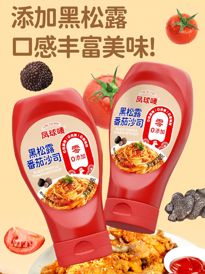 凤球唛也贴心得很,为家庭场景琢磨出更多花样:有小朋友喜欢的儿童番茄沙司;有追求本真的0添加系列;甚至还有黑松露、奇亚籽等新奇口味,满足爱尝鲜的味蕾。