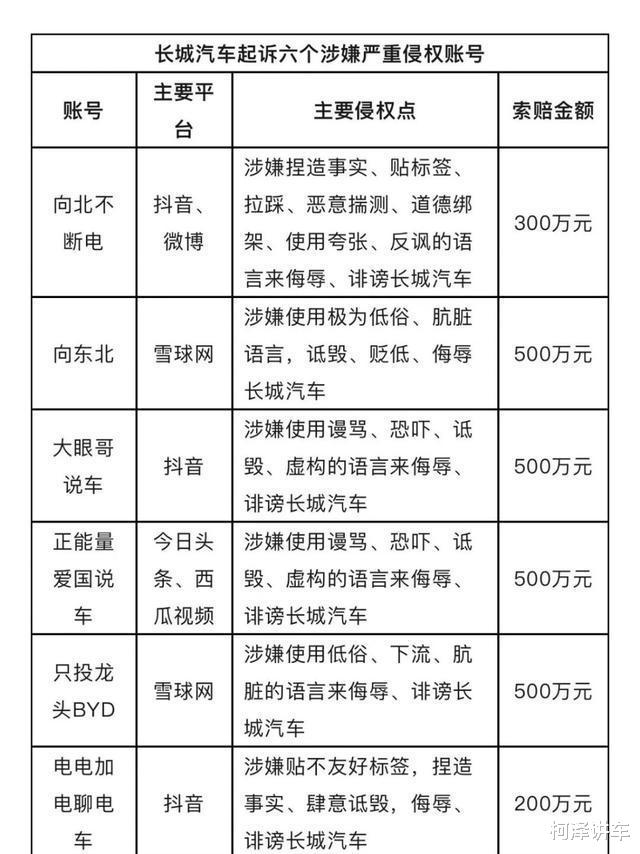 一个月后,也就是2023年7月,长城汽车直接放大招,把“向北不断电”连同其他五个账号一起告了,理由是涉嫌侵权,损害品牌形象,索赔金额更是高达200万到500万不等!