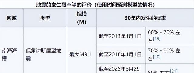 日本政府是针对南海海槽大地震发出的预警,日本政府称,未来30年年内,日本发生南海海槽大地震的概率高达80%,和之前相比上涨了十个百分点。