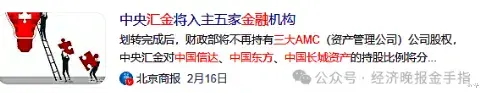 重磅二:中央汇金入主五大金融机构,AMC整合加速!从2月14日开始,中国信达、中国东方和长城资产这三大AMC正式加入“汇金系”。与此同时,中证金融和中国农业再保险也相继发布公告,财政部计划将持有的全部股权划转至中央汇金。