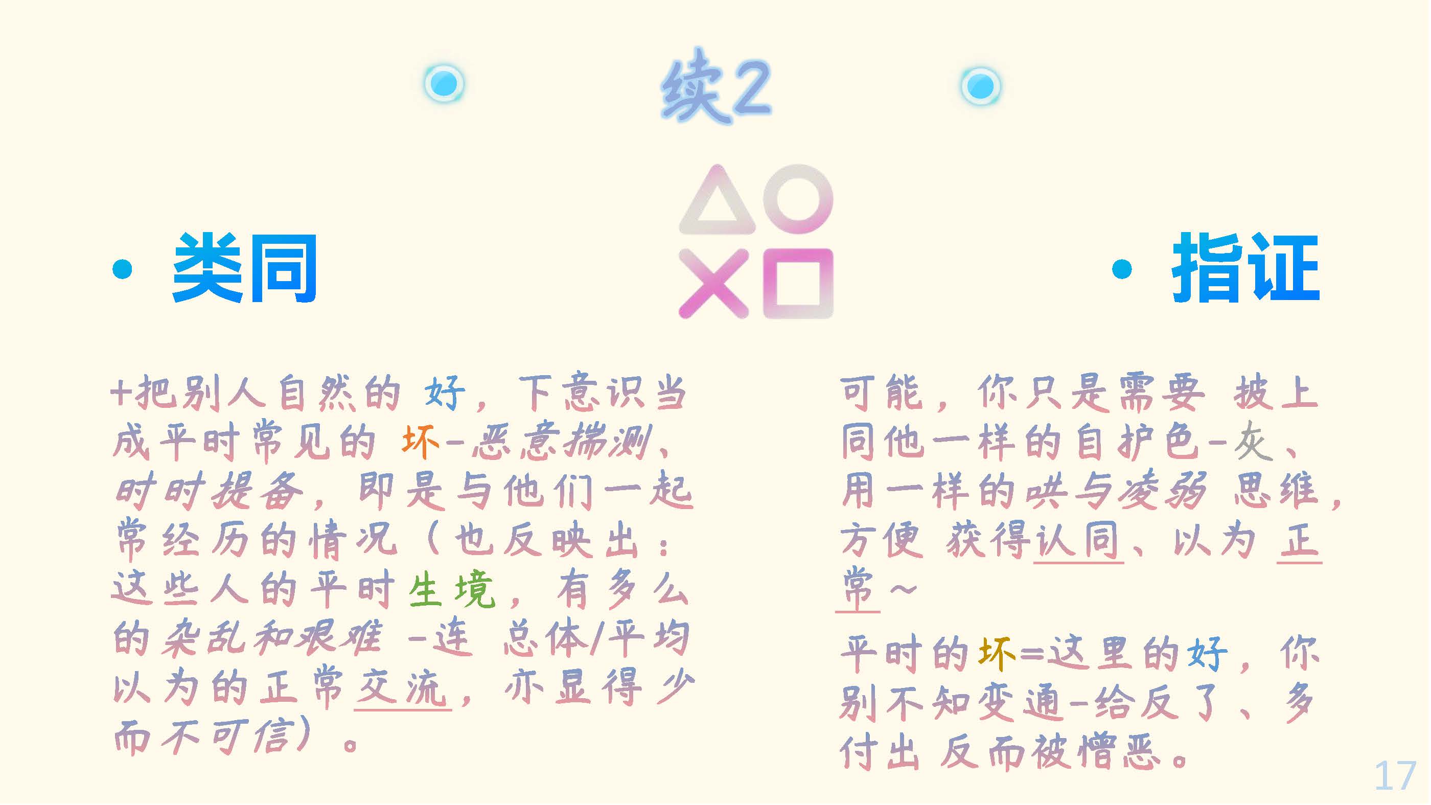 他会自然的 把不合自己想象的 筛出意识/内界外,留下 说的上话、表现正常的们-作为同伴;一人 周边的圈,也是他自己的能之延伸——