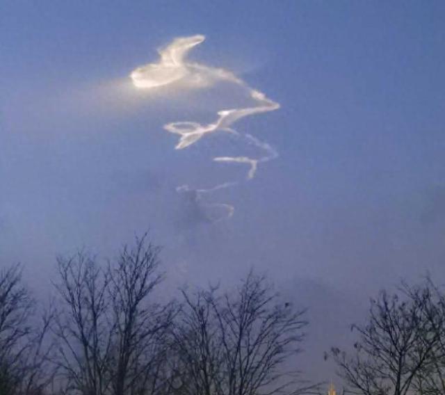 宁夏的银川和石嘴山等地的夜空出现了一个不明发光物体。它拖着长长的尾巴,在夜空中快速上升,但它的轨迹不是直线,而是弯弯曲曲的,像一条蛇一样扭动,看起来就像一条灵活的银蛇在天空中自由舞动。接着,一片罕见的蛇形云出现了,就像是为这个神秘的夜空准备的一幅华丽背景。