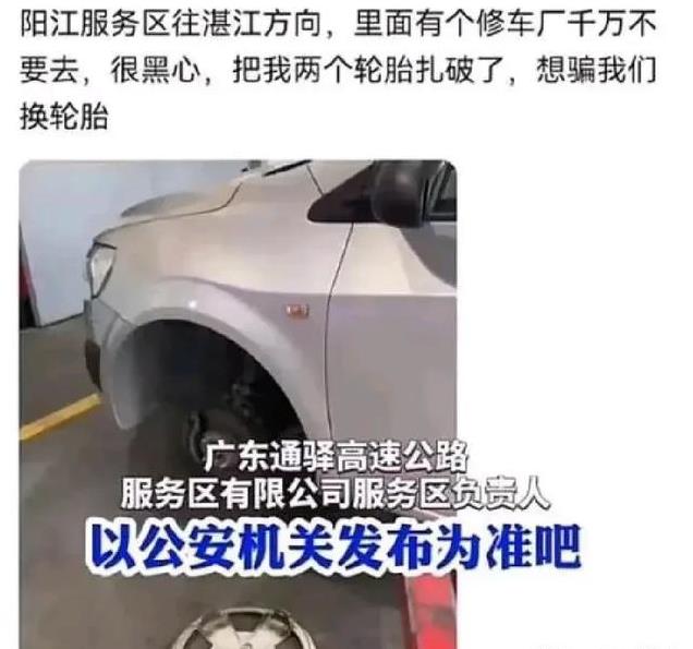 不仅被割车胎,去年还有车主爆出被撒钉子扎轮胎的事件,而且换车胎漫天要价4400!当时,阳江服务区还特意发了关于撒钉子、要价高事件的情况通报,并承诺会秉承为公众服务的初心,加强对承租商户的监管。