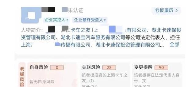故意割破别人车胎的汽修店员工属于一家叫湖北卡速保投资管理有限公司,登记地为武汉市的沌口开发区,阳江新墟服务区的汽修店是只是该公司的一个承租店之一。而这家公司的老板名下同时登记有四五家汽修行业的公司。一看就是在汽修行业的老江湖了。
