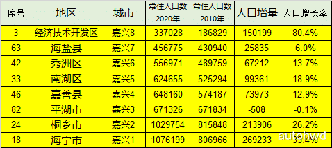 我们再看嘉兴,我不考虑经济技术开发区,海宁人口增长率最高,其次是桐乡,而平湖市出现负增长,海盐的增长率也只有6%。