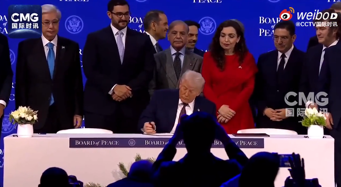 当地时间1月22日中午,美国前总统特朗普在瑞士达沃斯与十余个国家和地区代表签署文件,正式宣布启动所谓“和平委员会”。