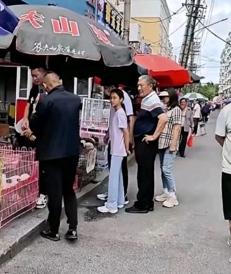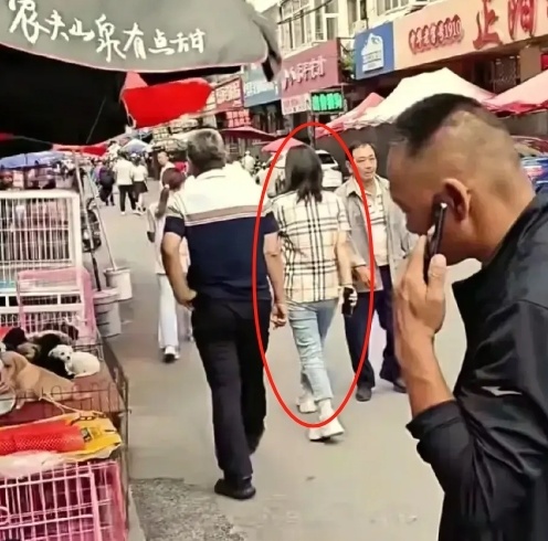 甜馨安静地站在市场的街道上,和父亲停下来逗狗。当她看到有手机对着她时,突然变得害羞和躲闪。可能是不希望被打扰。