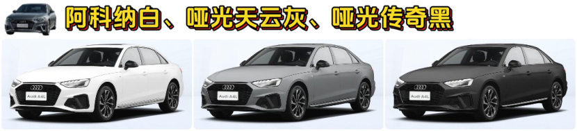 奥迪A4L B&O星夜版还提供三种车身颜色,阿科纳白、哑光天云灰、哑光传奇黑,高端大气的颜色选配让外观更有魅力,更有个性。