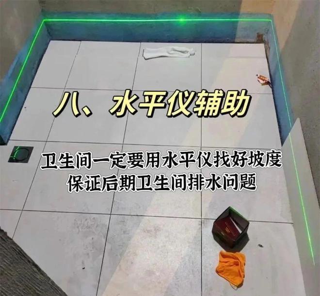 无论瓦工跟你说他多么有经验、做过多少户,也一定要让他用水平仪对缝找坡,这几毫米的差别,不借助水平仪真的很难把握,他也许只是十次里有一次小失误,但让你赶上了就会导致洗澡排水不及时,很麻烦的。