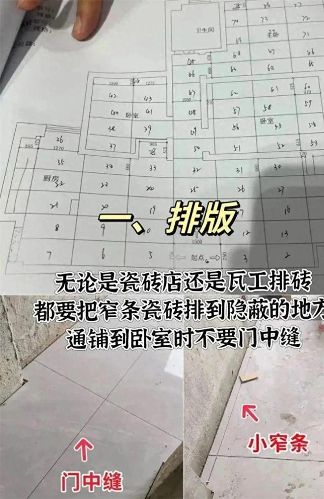 有的瓦工就因为不去排版,随心所欲贴砖,最后导致屋里瓷砖特别显乱。