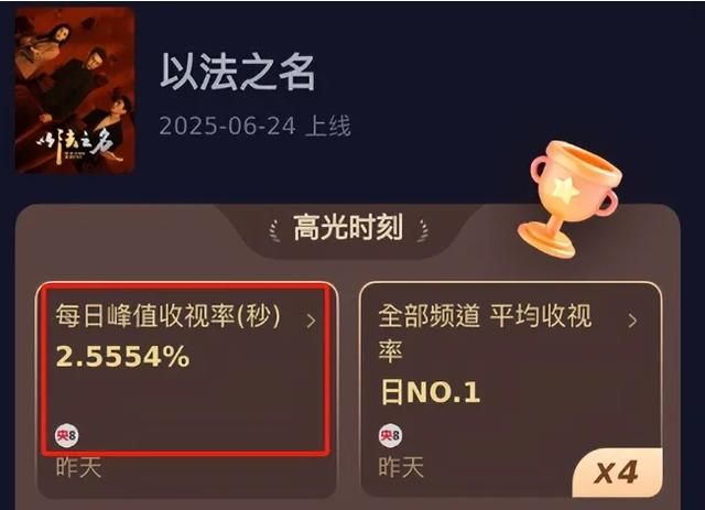 剧情层层推进、高潮迭起的同时,《以法之名》的收视率也一路高歌猛进,持续刷新自身纪录,峰值已强势突破2.5%。