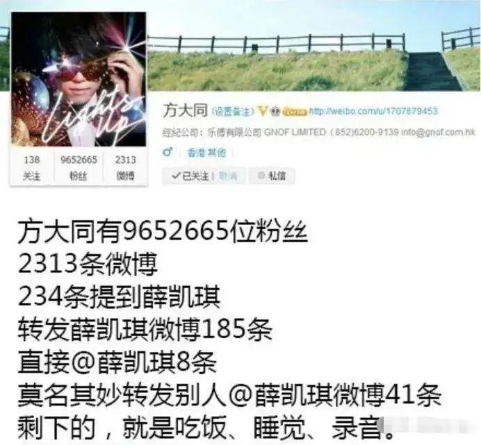方大同的歌迷专门总结方大同的微博,发现他每天只做四件事:吃饭、睡觉、录歌、薛凯琪。