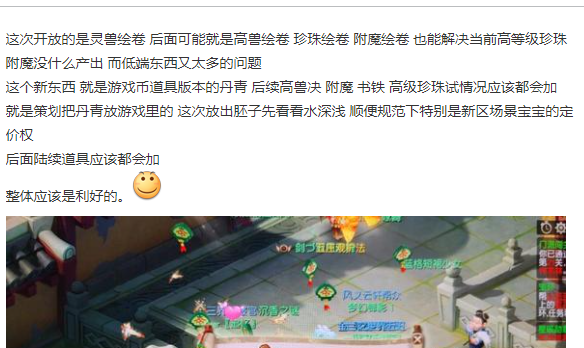 但是有一部分玩家看到了灵兽绘卷以后却开始了自己的想象,因为这里的灵兽绘卷获得的奖励,特别像以前在妙笔丹青玩法中可以获得的指定造型的珍兽元。然后就有玩家在想象,以后会不会会上线高兽绘卷,珍珠绘卷,附魔绘卷呀。