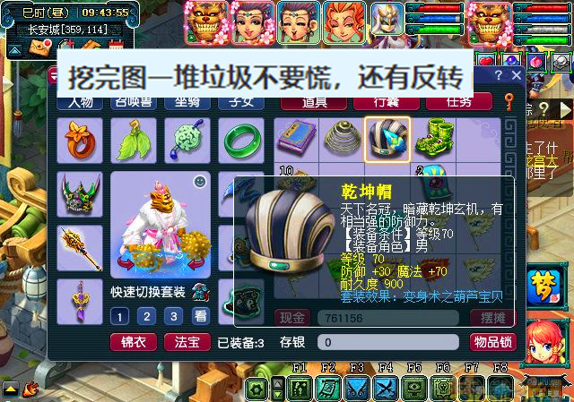 大家挖宝图的时候会挖出很多垃圾的装备,这里面60级的装备是比较值钱的,但是70级的装备就不怎么值钱了,商人收购70级装备时开出来的价格才几万的梦幻币,都不如留着自己跑环用了,上面这位玩家就用挖宝图挖出来的垃圾环点化出来了一个70级的魔力套,要比把环装卖给那些商人赚的多多了。