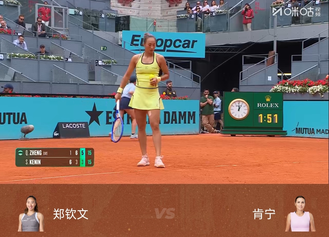决胜盘,肯宁上来状态不错连保带破连下两局2-0,随后郑钦文立马还以颜色轰出4-0高潮4-2反超比分,第7局,郑钦文发球局,肯宁完了成破发,第8局,肯宁发球局连续发球失误,郑钦文完成了回破5-3领先,接下来郑钦文发球胜赛局,完成了保发6-3拿下决胜盘,总比分2-1逆转肯宁晋级32强!全场比赛郑钦文轰出10ACE。