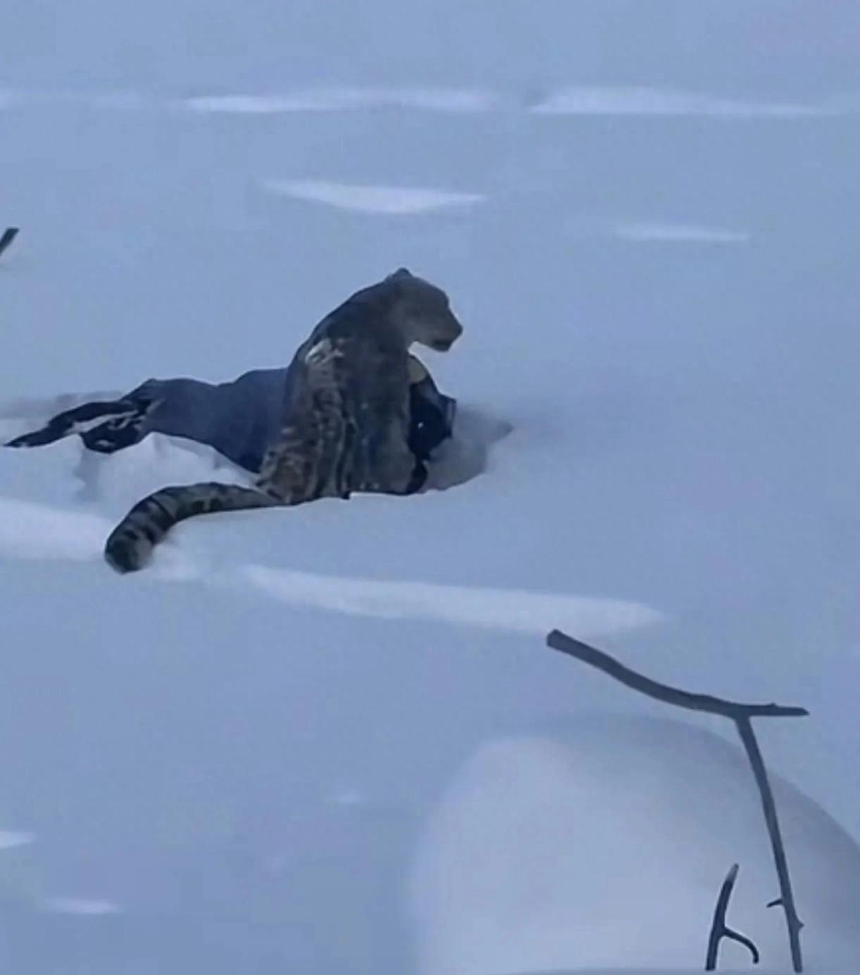 一位男士焦急地喊着“快打120!快打120!雪豹咬人!”