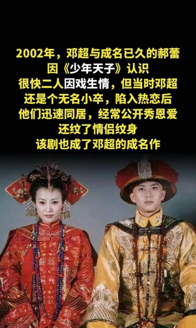 说起郝蕾和邓超的这段往事,那得追溯到2002年。当时两人一起拍《少年天子》,戏里戏外都擦出了火花。那时候的郝蕾才24岁,邓超23岁,正是青春年少的好时候。他们在片场的互动特别甜蜜,经常被拍到牵手、拥抱的照片。最让人印象深刻的是,两人还在身上纹了情侣纹身,可见当时爱得有多深。
