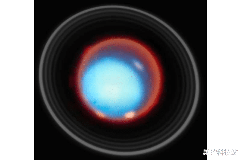 在天王星磁极附近探测到两条明亮的极光带,同时在两带之间部分区域的发射和离子密度降低。图:欧洲航天局