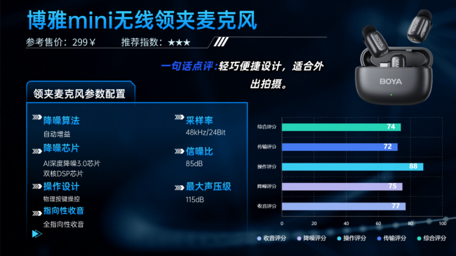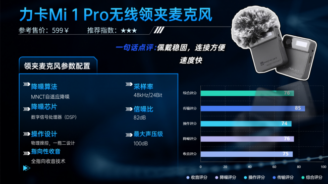 创作贴合:单麦仅重7g,外径仅13mm,无LOGO设计佩戴隐蔽,行业首创钛合金夹持结构,夹持稳固,可横竖灵活固定,适配手机、相机、运动相机多设备,适合各类出镜创作场景。