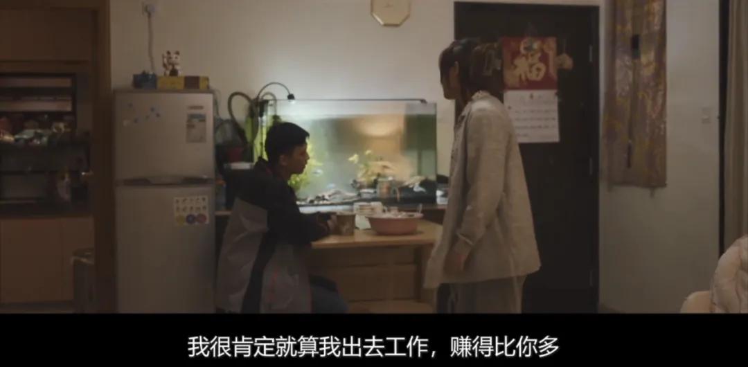 阿伟这边,嘴上浪漫地说着“我养你啊”。实则只是领一份工钱,根本不打算分担阿贞的育儿重担。